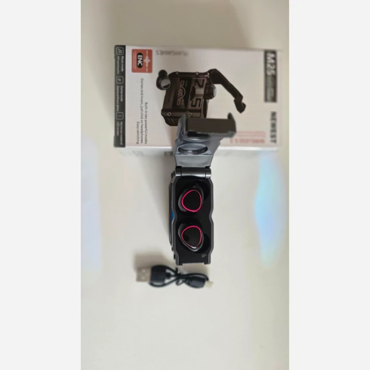 اگر به دنبال تهیه یک هدفون بیسیم گیمینگ و استفاده روزانه هستید ، هدفون بلوتوثی گیمینگ دامیکس مدل DAMIX M25 یک ایرپاد مخصوص بازی و استفاده روزانه است که با طراحی اسپرت با افکت های لامپ های 7 رنگ RGB ظاهر جذاب برای استفاده روزانه را به شما اراِِئه می نماید. این مدل برای اتصال به دستگاه به بلوتوث نسخه 5.3 مجهز شده است و در مدت زمان کوتاه ، اتصال با گوشی موبایل اندروید یا ios شما برقرار خواهد شد.از ویژگیهای اصلی این محصول محفظه نگهدارنده یا همان کیس آن است. این کیس قابلیت شارژ هدفون را دارد. برای شارژ آن کافی است از درگاه USB-C تعبیه شده بر روی کیس و کابل شارژ درون بسته بندی استفاده کنید. همچنین هدفون گیمینگ بلوتوثی دارای یک میکروفون با کیفیت است و این ویژگی ، آن را برای مکالمه مناسب میسازد . از قابلیت های این محصول میتوان به ضد آب بودن ، فعال بودن Siry در آیفون ، HD Voice و ENC است. زیر هدفون گیمینگ بلوتوثی یک پورت خروجی USB نیز قرار دارد که به وسیله آن میتوانید از باتری ایرپاد به عنوان پاور بانک اضطراری نیز استفاده کنید