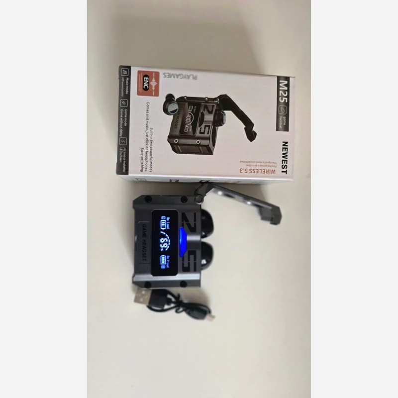 اگر به دنبال تهیه یک هدفون بیسیم گیمینگ و استفاده روزانه هستید ، هدفون بلوتوثی گیمینگ دامیکس مدل DAMIX M25 یک ایرپاد مخصوص بازی و استفاده روزانه است که با طراحی اسپرت با افکت های لامپ های 7 رنگ RGB ظاهر جذاب برای استفاده روزانه را به شما اراِِئه می نماید. این مدل برای اتصال به دستگاه به بلوتوث نسخه 5.3 مجهز شده است و در مدت زمان کوتاه ، اتصال با گوشی موبایل اندروید یا ios شما برقرار خواهد شد.از ویژگیهای اصلی این محصول محفظه نگهدارنده یا همان کیس آن است. این کیس قابلیت شارژ هدفون را دارد. برای شارژ آن کافی است از درگاه USB-C تعبیه شده بر روی کیس و کابل شارژ درون بسته بندی استفاده کنید. همچنین هدفون گیمینگ بلوتوثی دارای یک میکروفون با کیفیت است و این ویژگی ، آن را برای مکالمه مناسب میسازد . از قابلیت های این محصول میتوان به ضد آب بودن ، فعال بودن Siry در آیفون ، HD Voice و ENC است. زیر هدفون گیمینگ بلوتوثی یک پورت خروجی USB نیز قرار دارد که به وسیله آن میتوانید از باتری ایرپاد به عنوان پاور بانک اضطراری نیز استفاده کنید